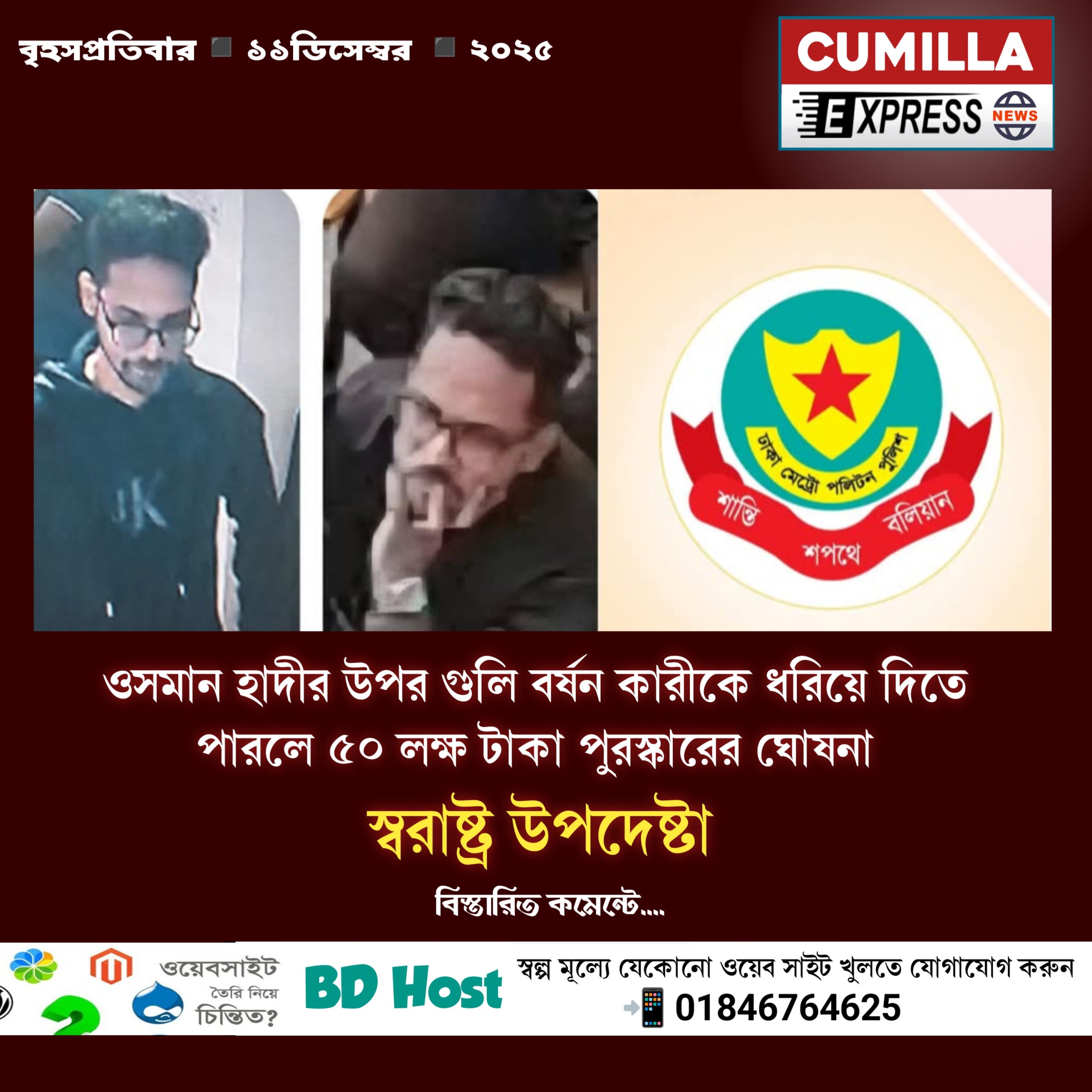 হাদির হামলাকারীদের ধরিয়ে দিলে ৫০ লাখ টাকা পুরস্কার : স্বরাষ্ট্র উপদেষ্টা