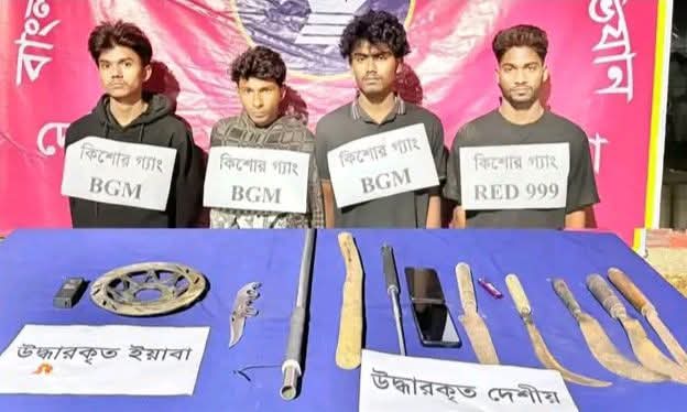 ডেক্স নিউজঃ কুমিল্লার দেবিদ্বার উপজেলায় কিশোর গ্যাংয়ের দৌরাত্ম্য দমনে সেনাবাহিনী বিশেষ অভিযান চালিয়ে দুটি গ্যাংয়ের চার লিডারকে আটক করেছে। অভিযানের সময় তাদের কাছ থেকে দেশীয় অস্ত্র উদ্ধার করা হয়। পরবর্তীতে