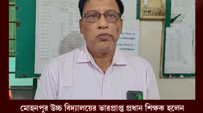 দেবিদ্বার(কুমিল্লা প্রতিনিধি) কুমিল্লার দেবিদ্বার উপজেলার মোহনপুর উচ্চ বিদ্যালয়ের ভারপ্রাপ্ত প্রধান শিক্ষক হলেন বিদ্যালয়ের সিনিয়র শিক্ষক বিজয় কুমার দত্ত। ১৬ই ডিসেম্বর বিদ্যালয়ের এক অফিস আর্দেশে বিষয়টি নিশ্চিত করা হয়৷ এর আগে